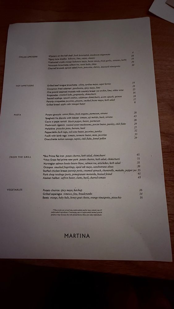 Martina is a trendy, upscale Argentine-Italian cocktail bar in Minneapolis that offers a wide array of options for every type of diner. With a diverse menu featuring vegan and vegetarian choices, Martina caters to various dietary preferences. The restaurant boasts a romantic ambiance, full bar, and attentive service. Customers rave about the delectable dishes, with standout items like the potato churros and the one-pound steamed mussels receiving high praise. The gnocchi and the seafood options are also fan favorites. Martina's dessert selection, including the banana pancake, is described as the perfect ending to a fantastic meal. Whether you're looking for a classy date spot or a place to gather with friends, Martina offers a memorable dining experience that will keep you coming back for more.